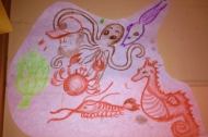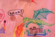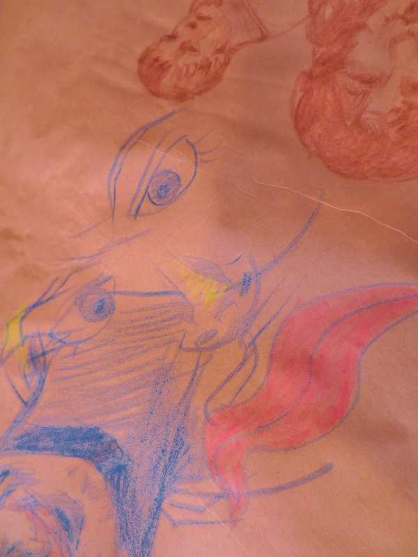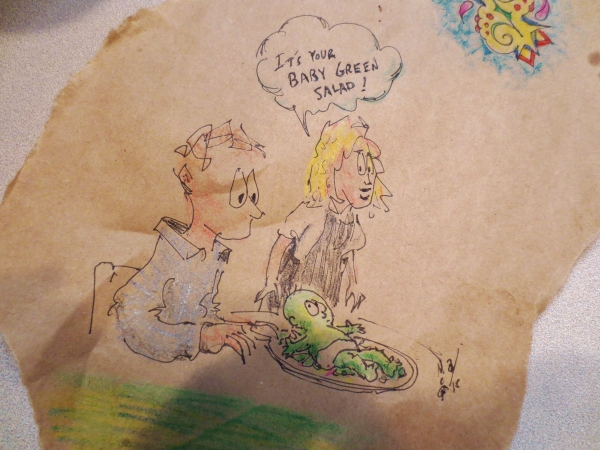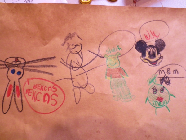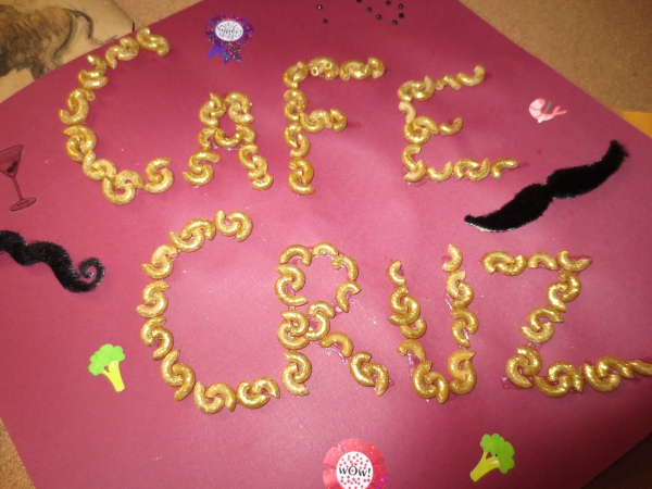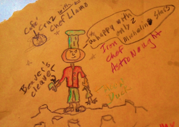 With crayons on all the inside tables, there is a lot of creative fun going on at Cafe Cruz. Here are just a few examples.